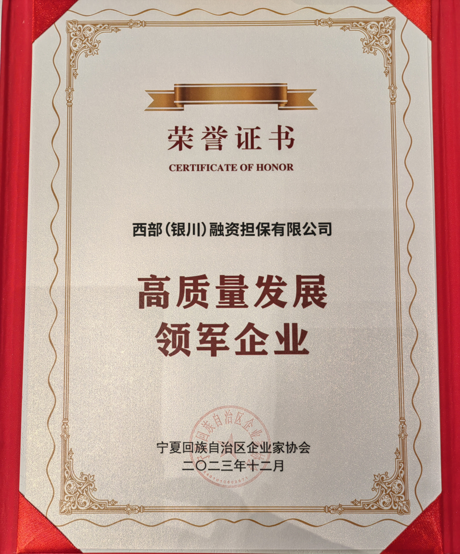 西部(銀川)融資擔保有限公司是經銀川市委、政府批準并出資設立的以擔保為主業的專業金融服務機構,于2014年7月正式掛牌成立,注冊資本45.87億元,是AA+級擔保機構,為中國銀行間市場交易商協會會員單位,中國融資擔保業協會副會長單位,累計七次蟬聯國內金融領域最權威的《金融時報》“金龍獎,累計四年榮獲“自治區金融服務創新獎,憑借創新優勢、規模優勢、品牌優勢躋身國內擔保行業前列,成為國內具有核心競爭力和品牌影響力的擔保機構。